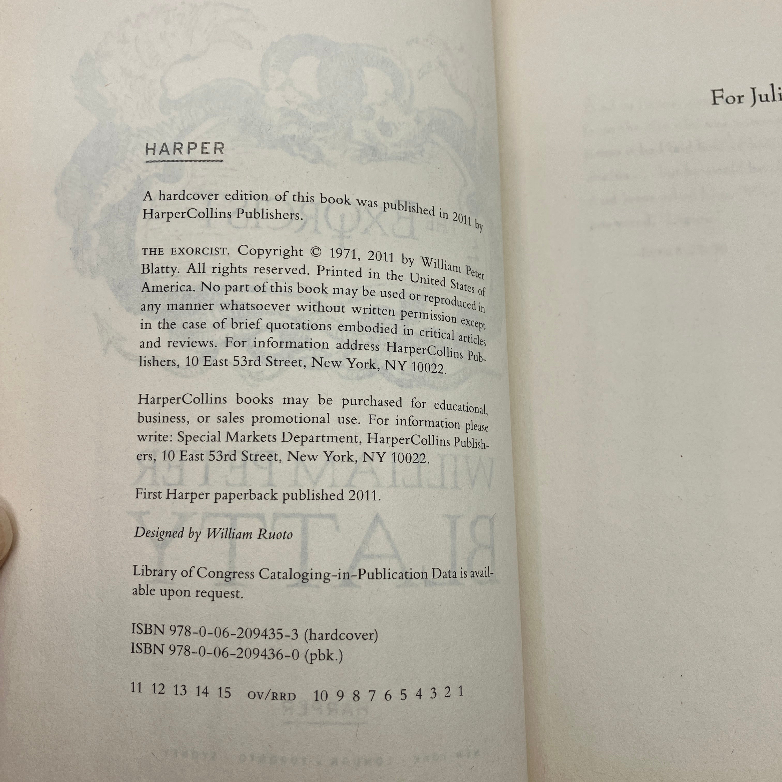 Harper, 2011. Trade paperback of The Exorcist by William Peter Blatty.