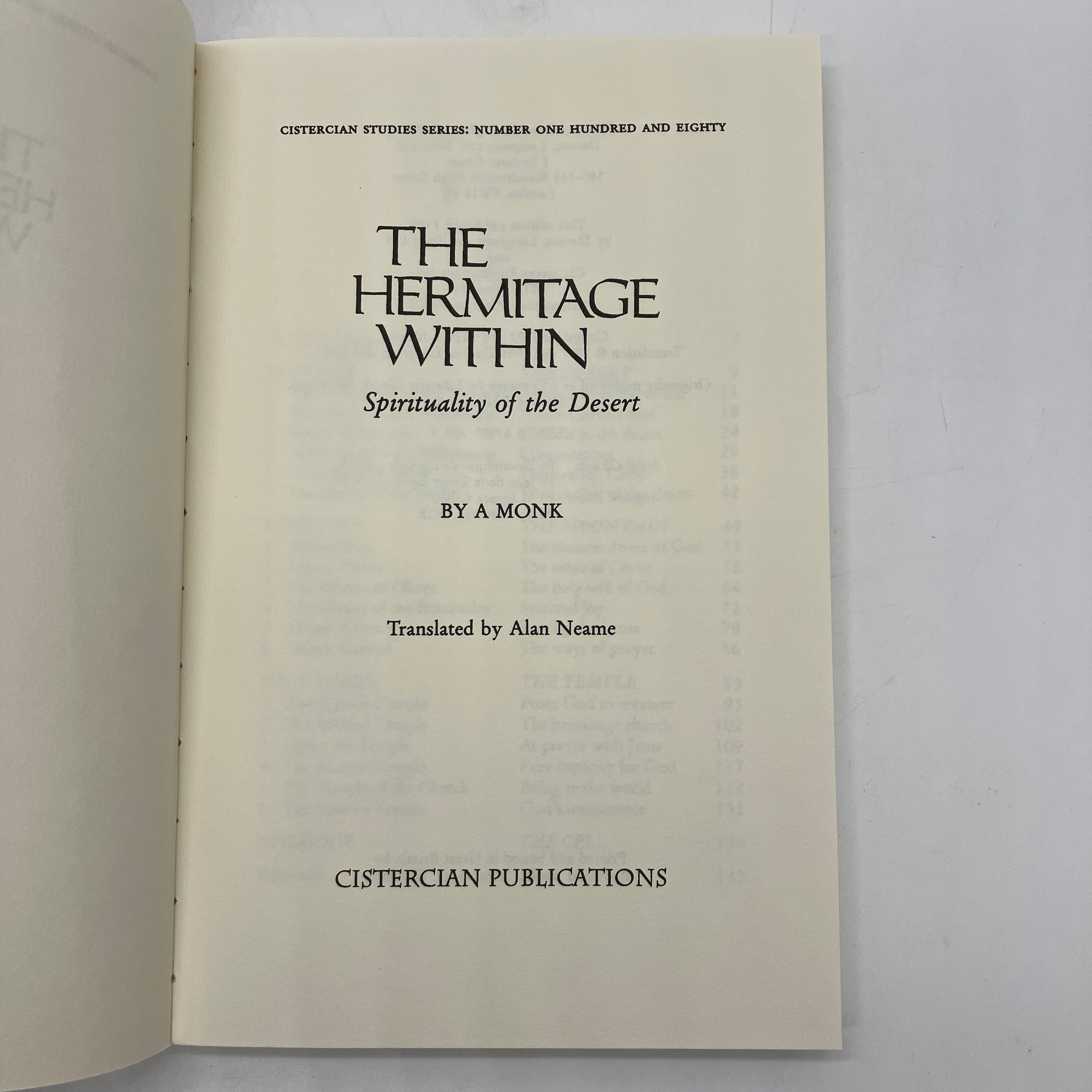 Cistercian Publications, 1999. Trade paperback of The Hermitage Within: Spirituality of the Desert by A Monk.