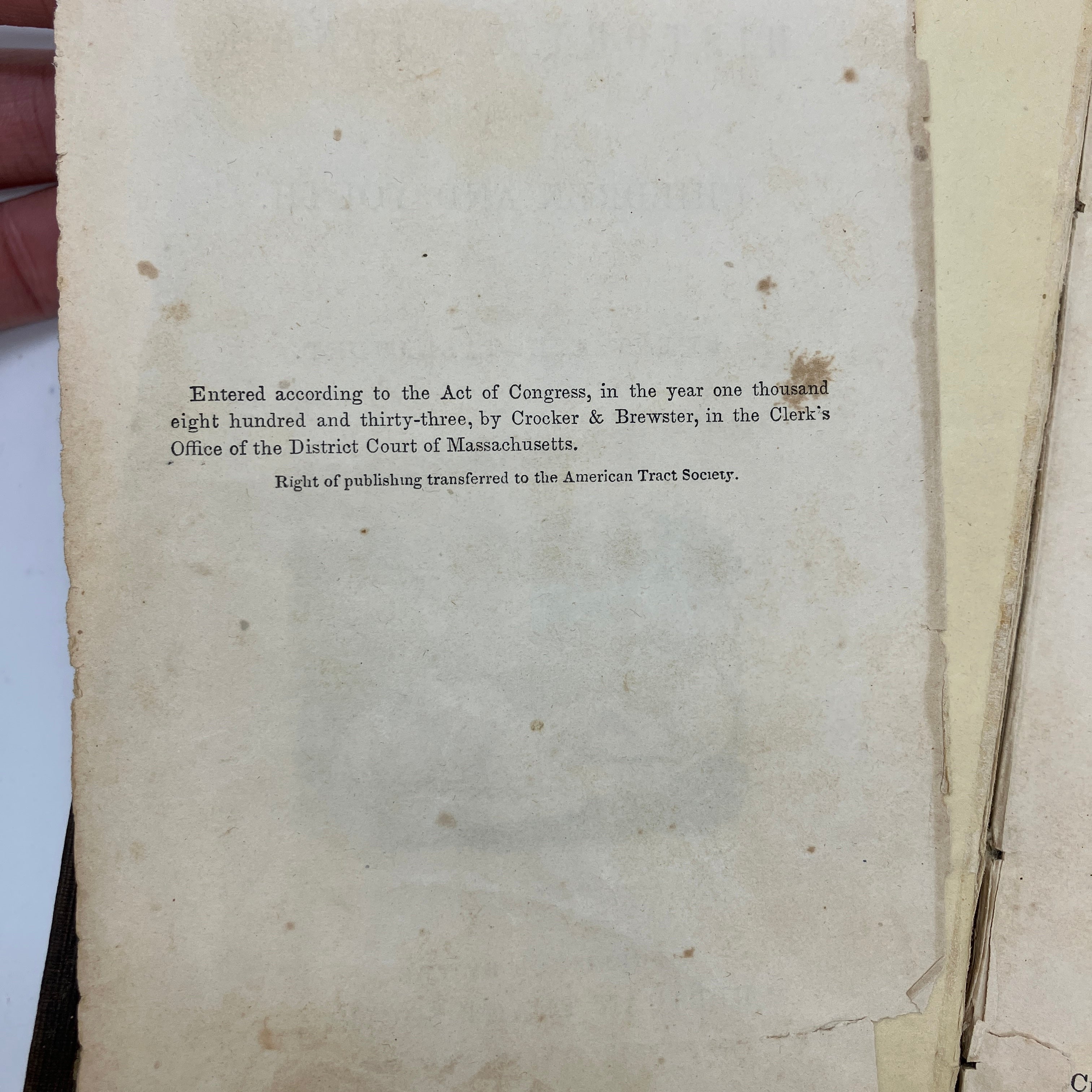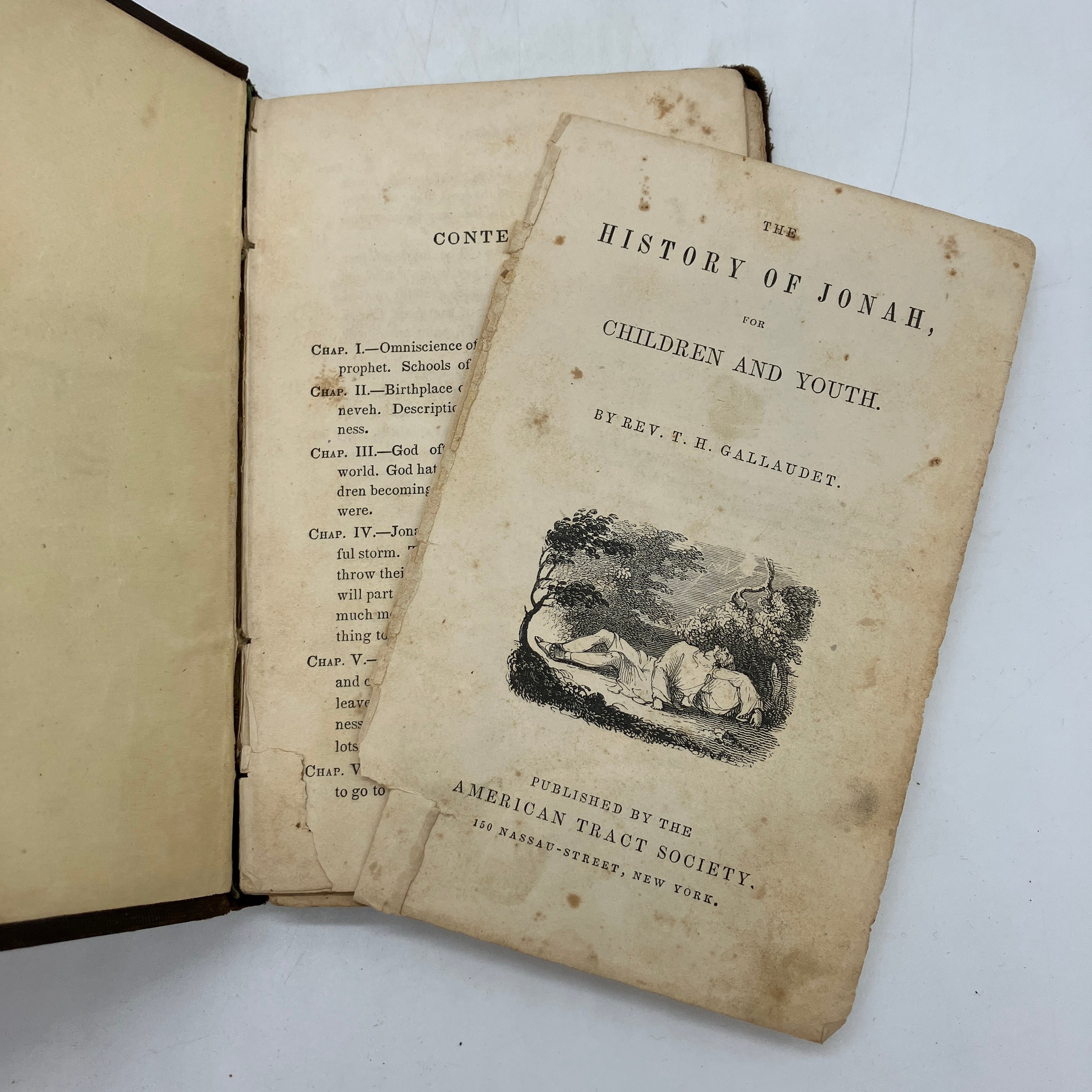 American Tract Society, 1833. Antiquarian cloth bound hardcover of The History of Jonah, for Children and Youth by Thomas Gallaudet.