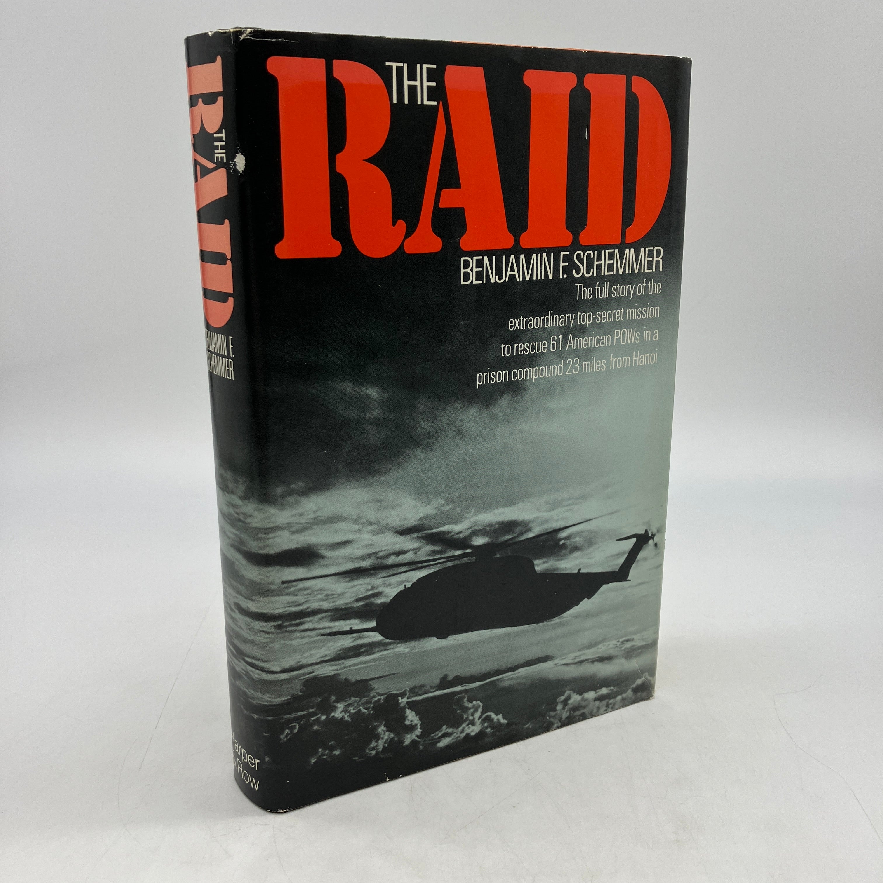 Harper & Row, Publishers, 1976. First edition hardcover with dust jacket of The Raid: The Full Story of the Extraordinary Top-Secret Mission to Rescue 61 American POWs in a Prison Compound 23 Miles from Hanoi by Benjamin Schemmer.