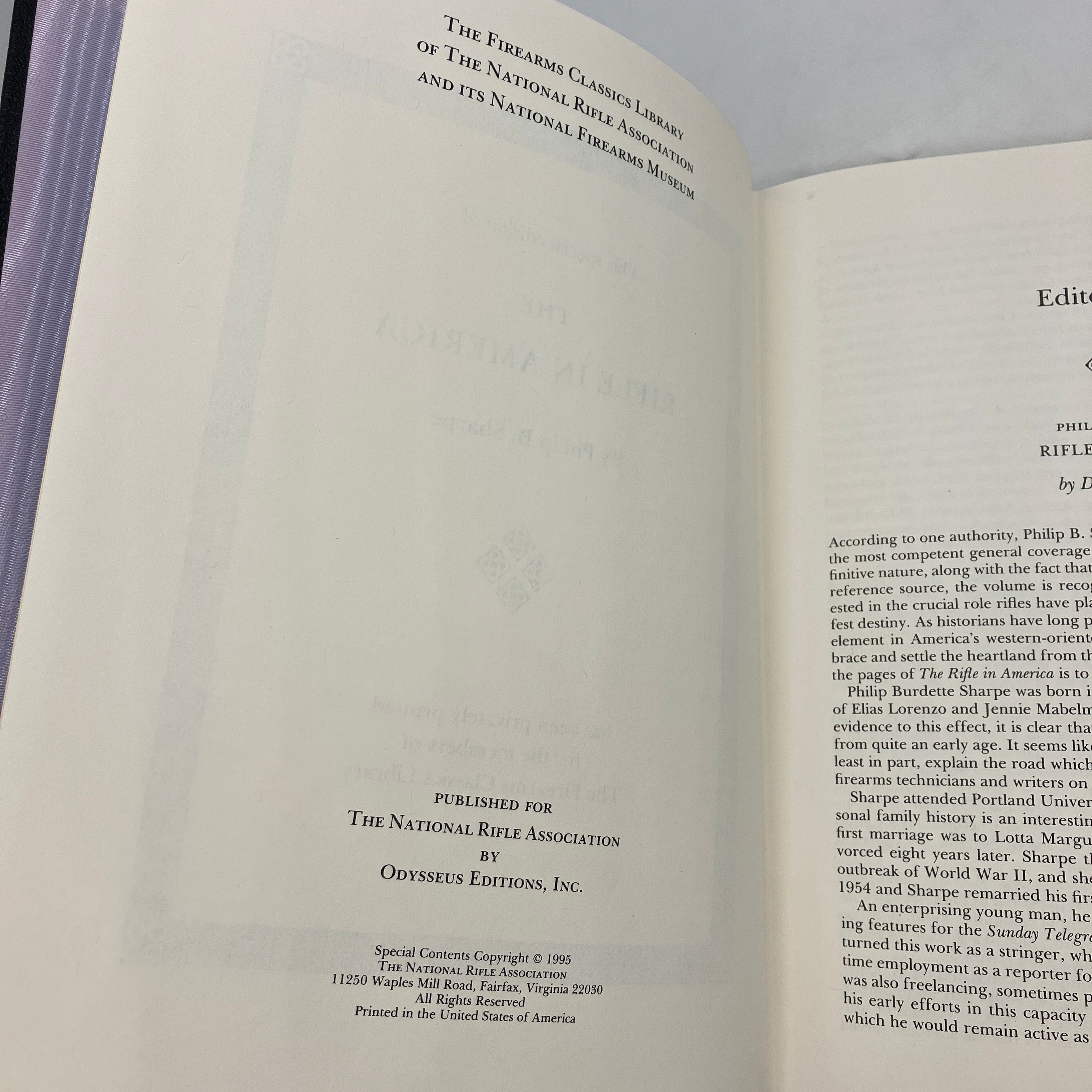 The Firearms Classic Library, 1995. Facsimile edition leather bound hardcover of The Rifle in America by Philip Sharpe.