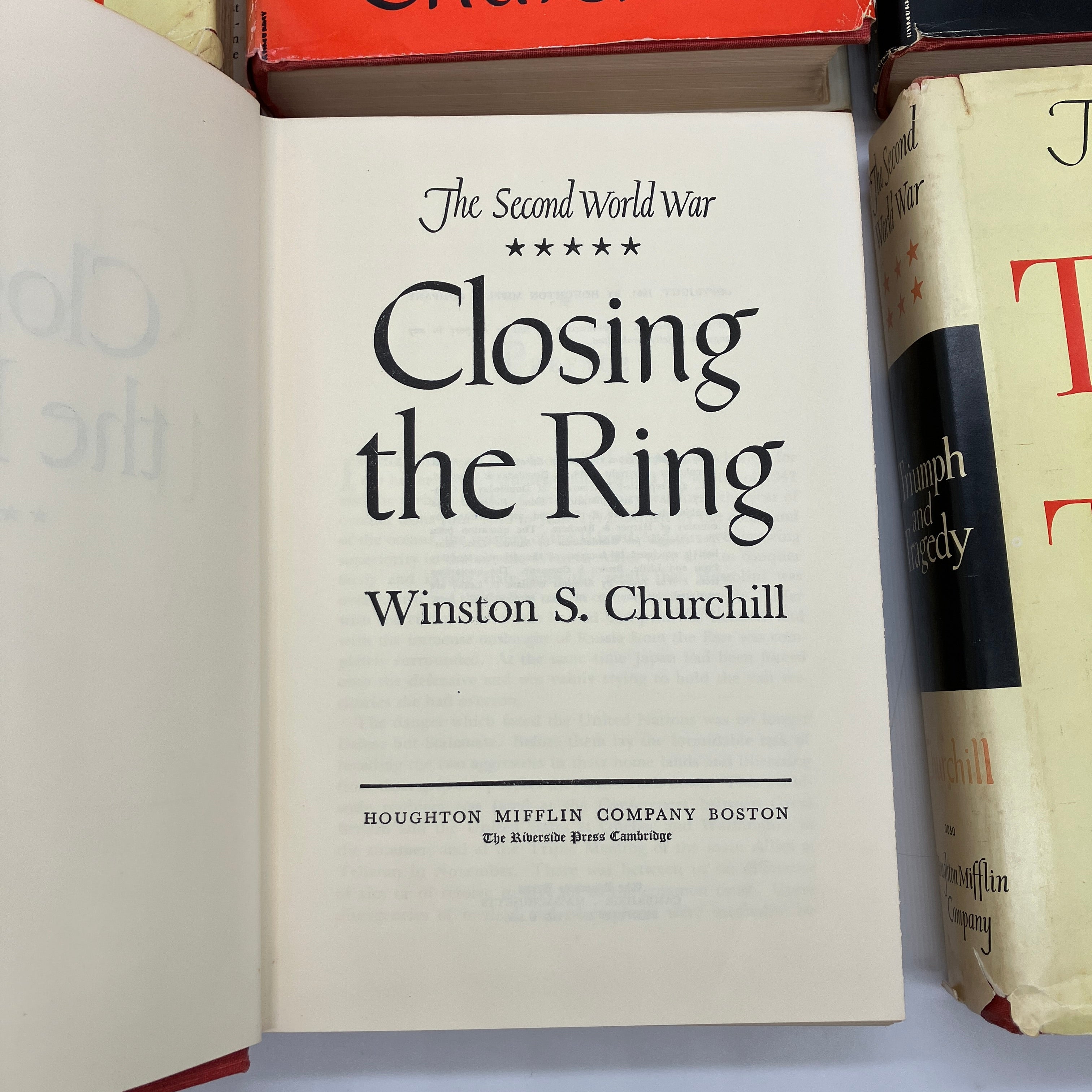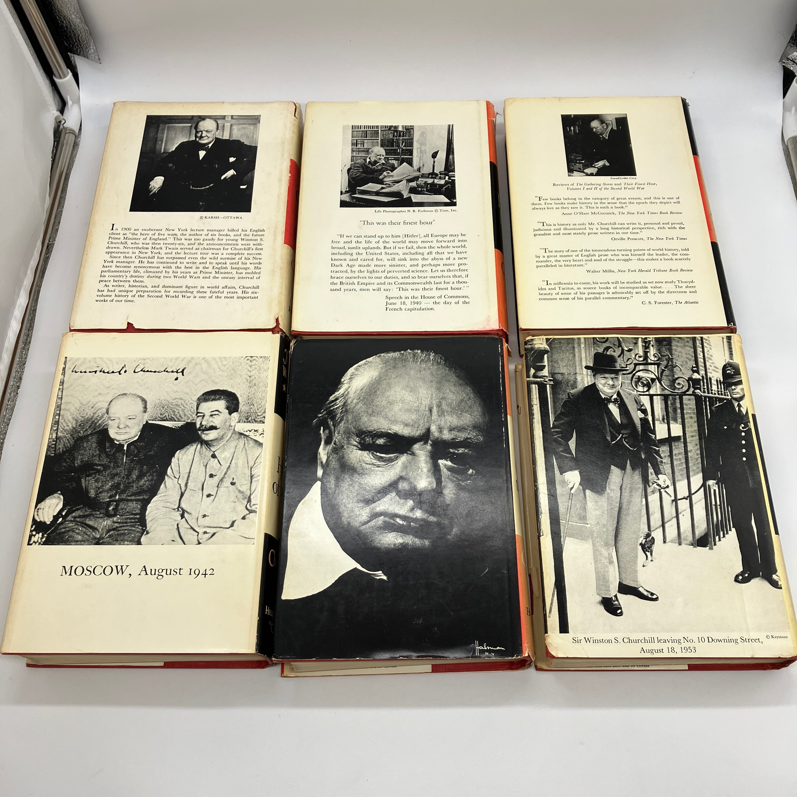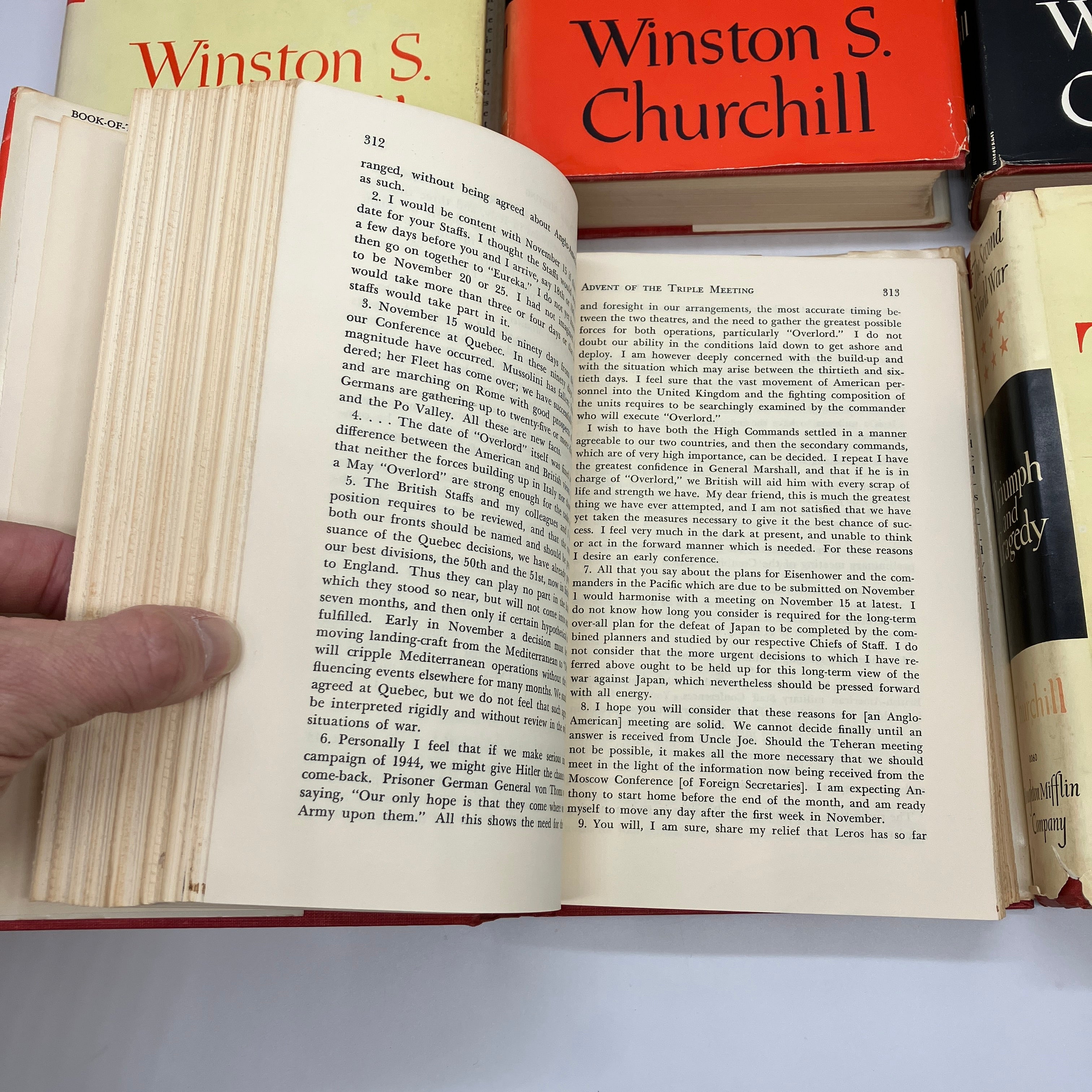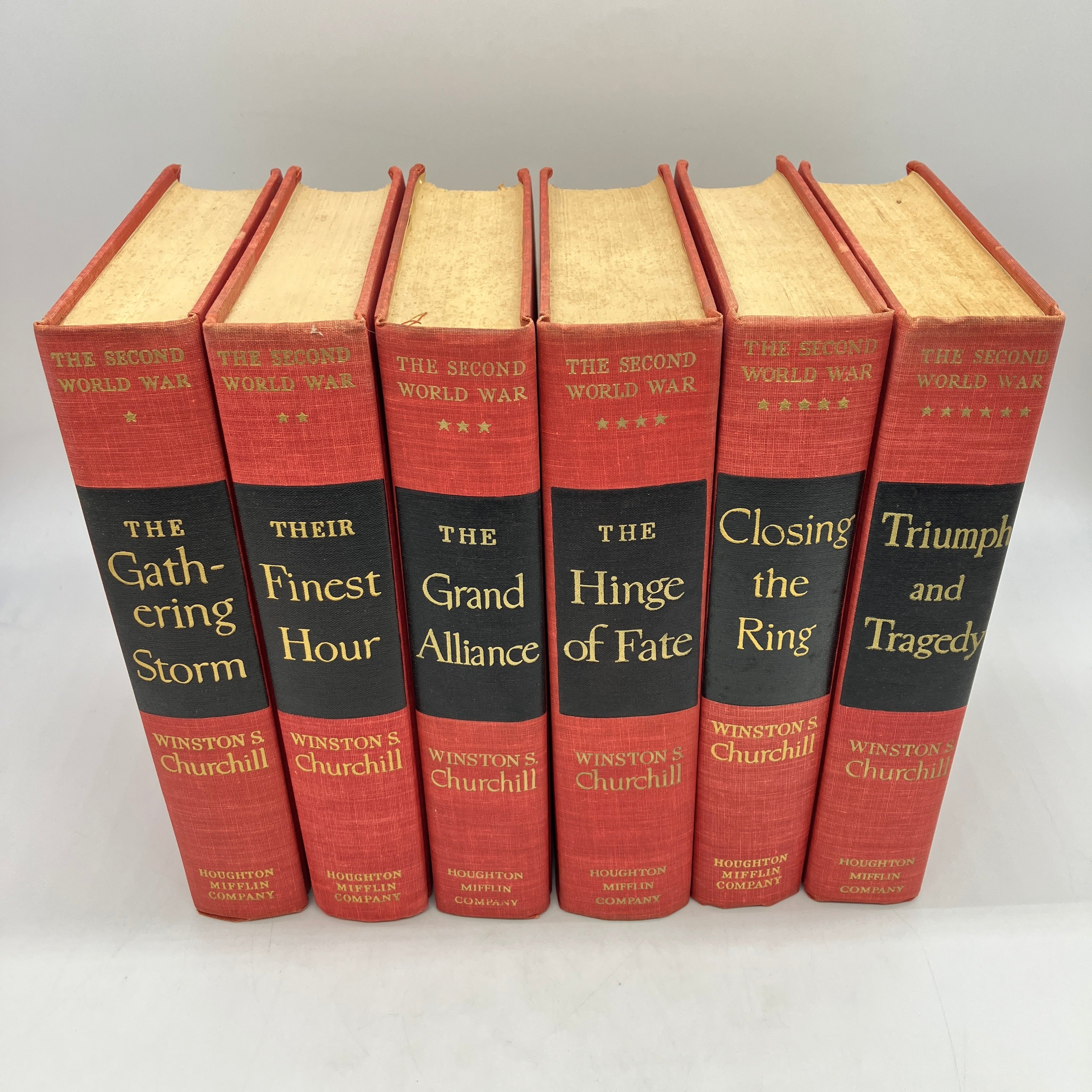 Houghton Mifflin Company, 1953. Book club edition cloth bound hardcovers with dust jackets six-volume set of The Second World War by Winston Churchill.
