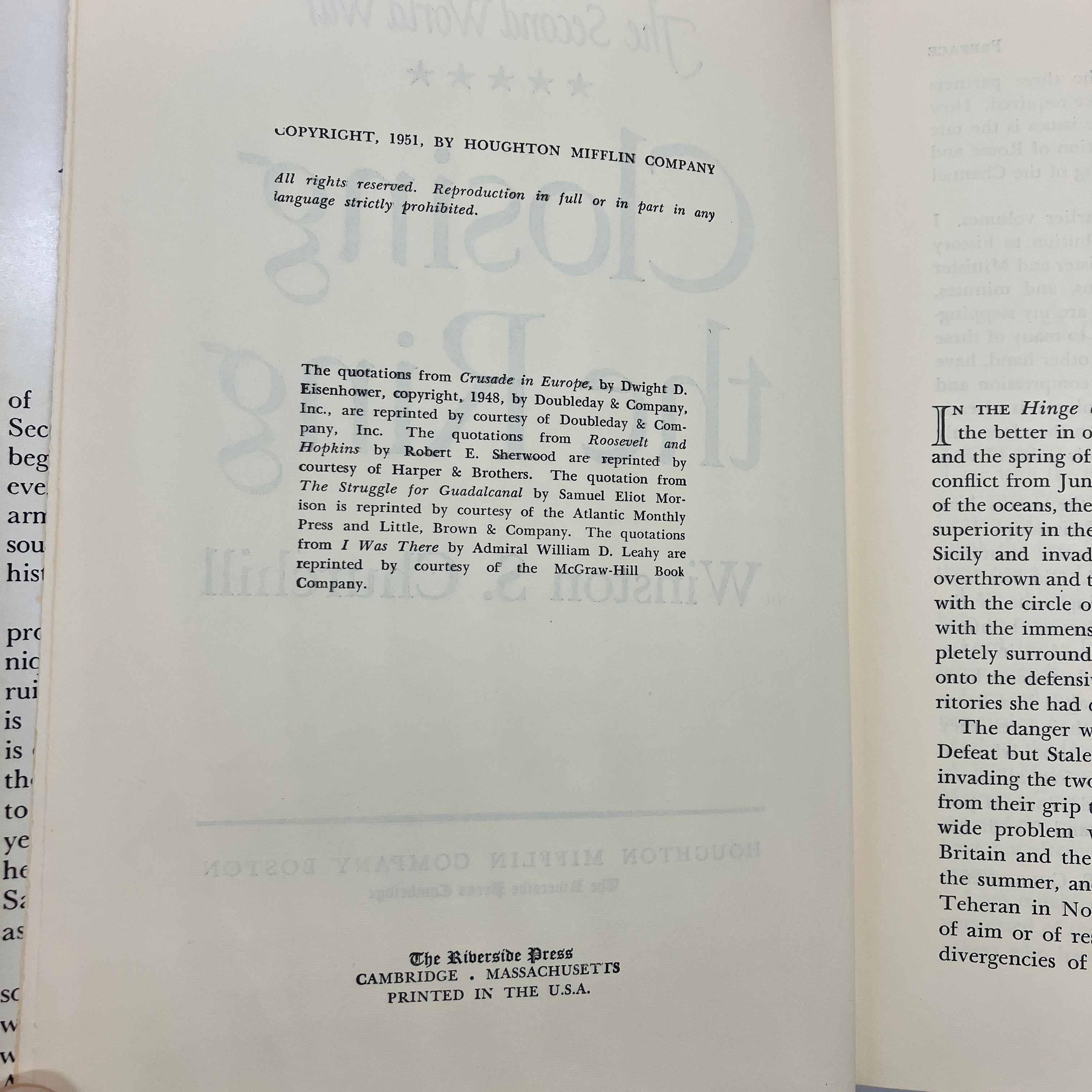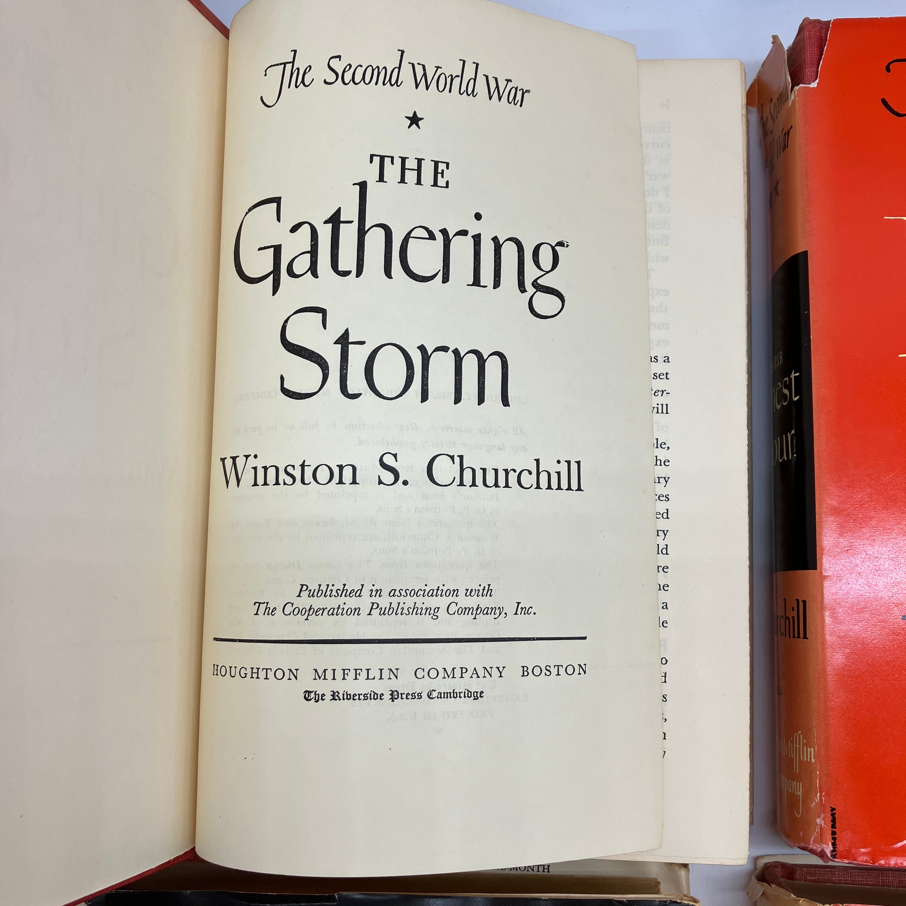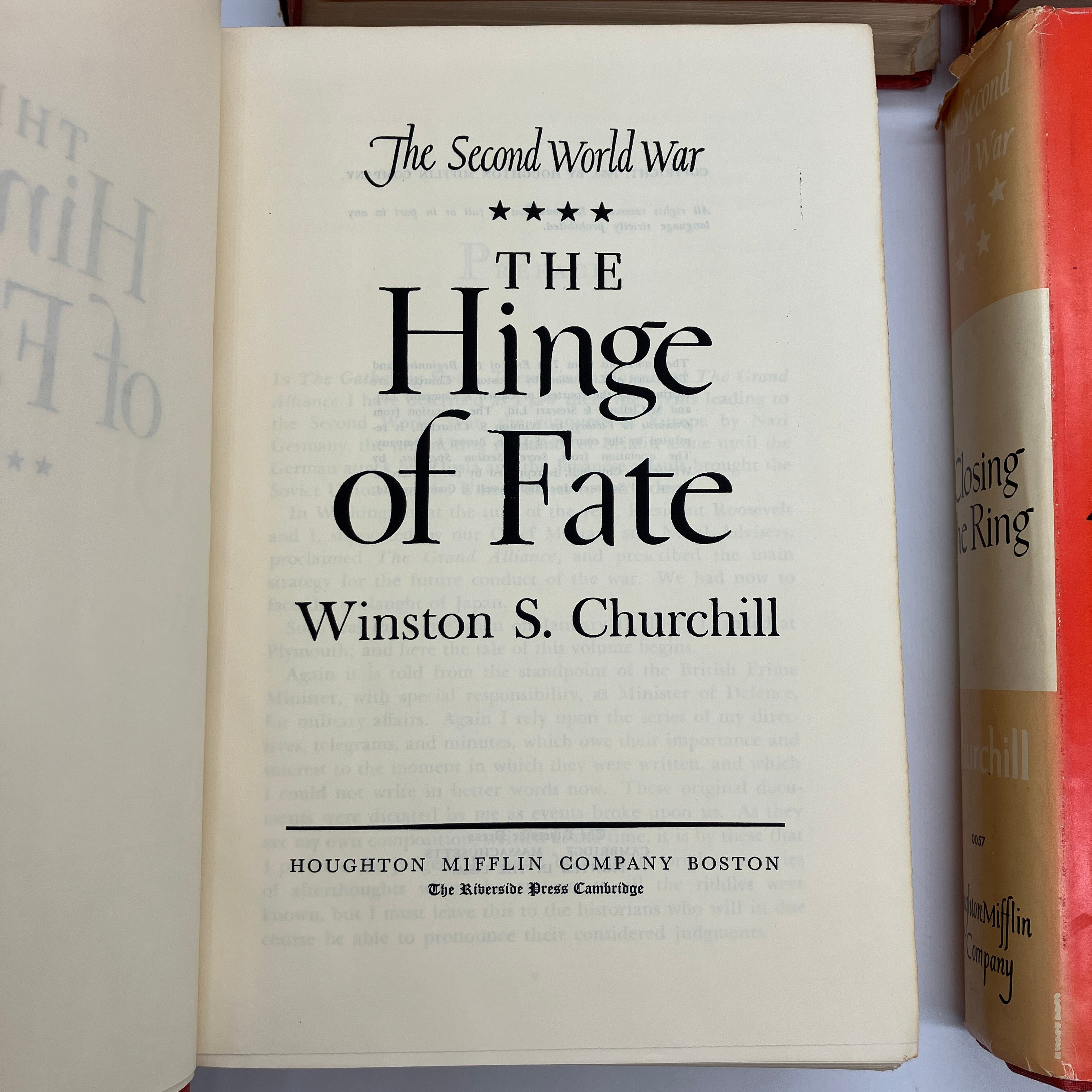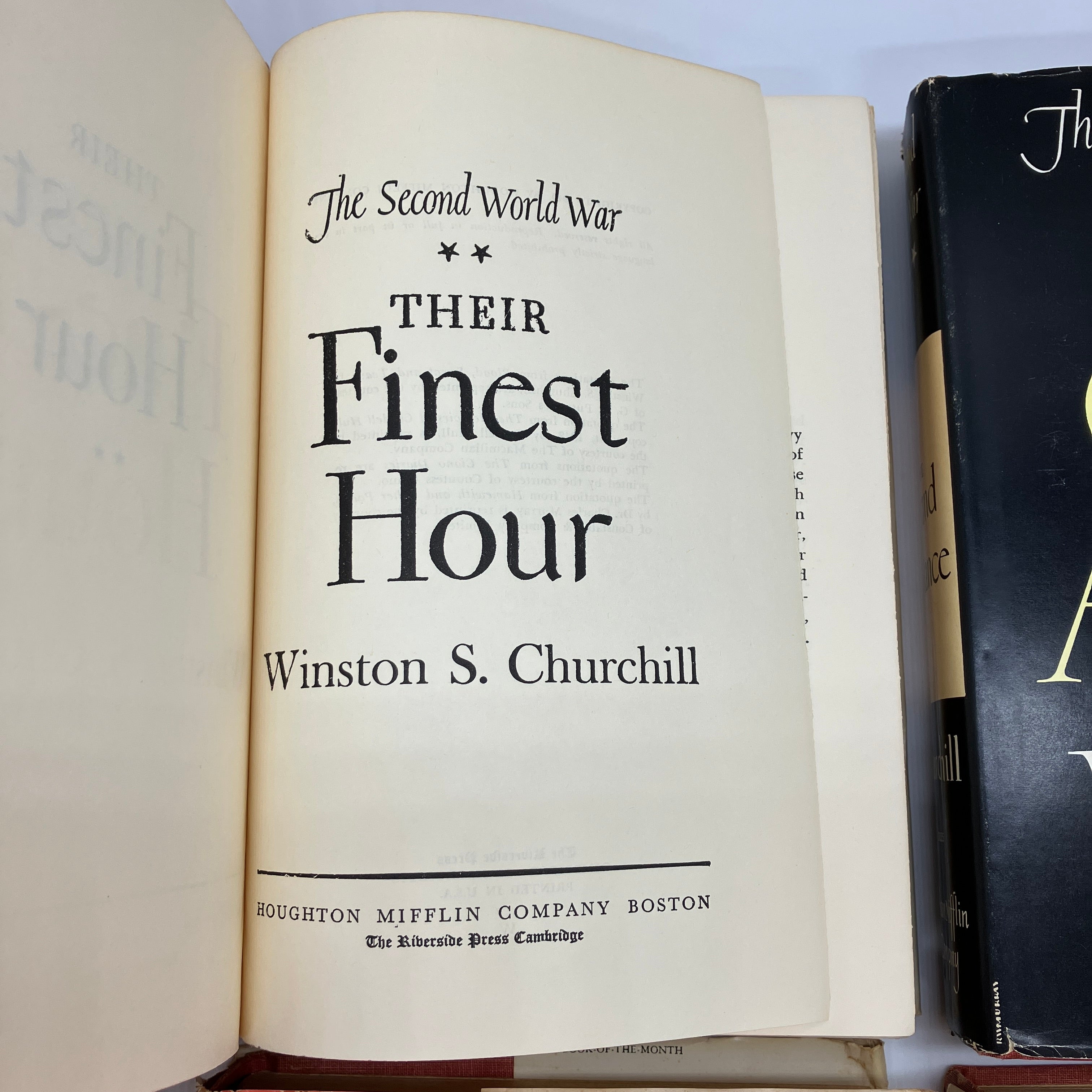 Houghton Mifflin Company, 1953. Book club edition cloth bound hardcovers with dust jackets six-volume set of The Second World War by Winston Churchill.
