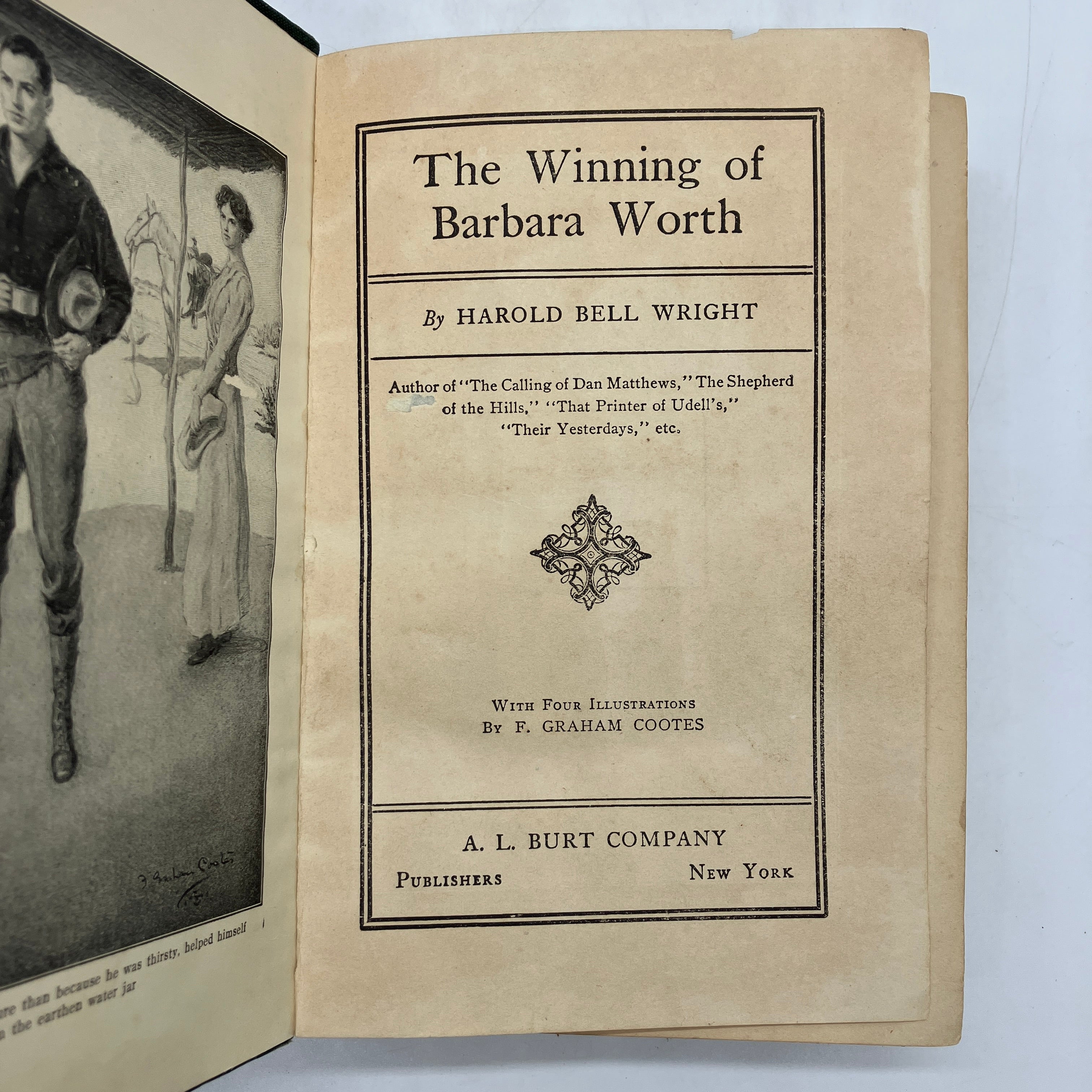 A.L. Burt Company, 1911. Antiquarian cloth bound hardcover of The Winning of Barbara Worth by Harold Bell Wright.