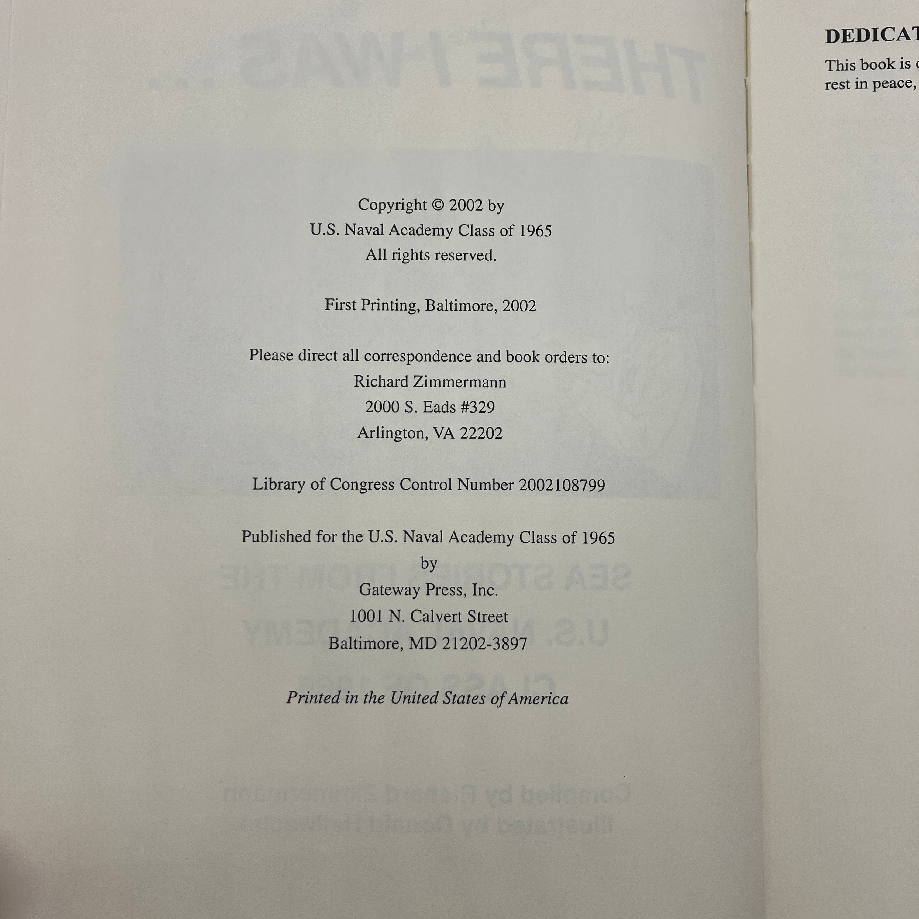 Gateway Press, 2002. Hardcover of There I Was...Sea Stories from the U.S. Naval Academy Class of 1965 by Richard Zimmermann.