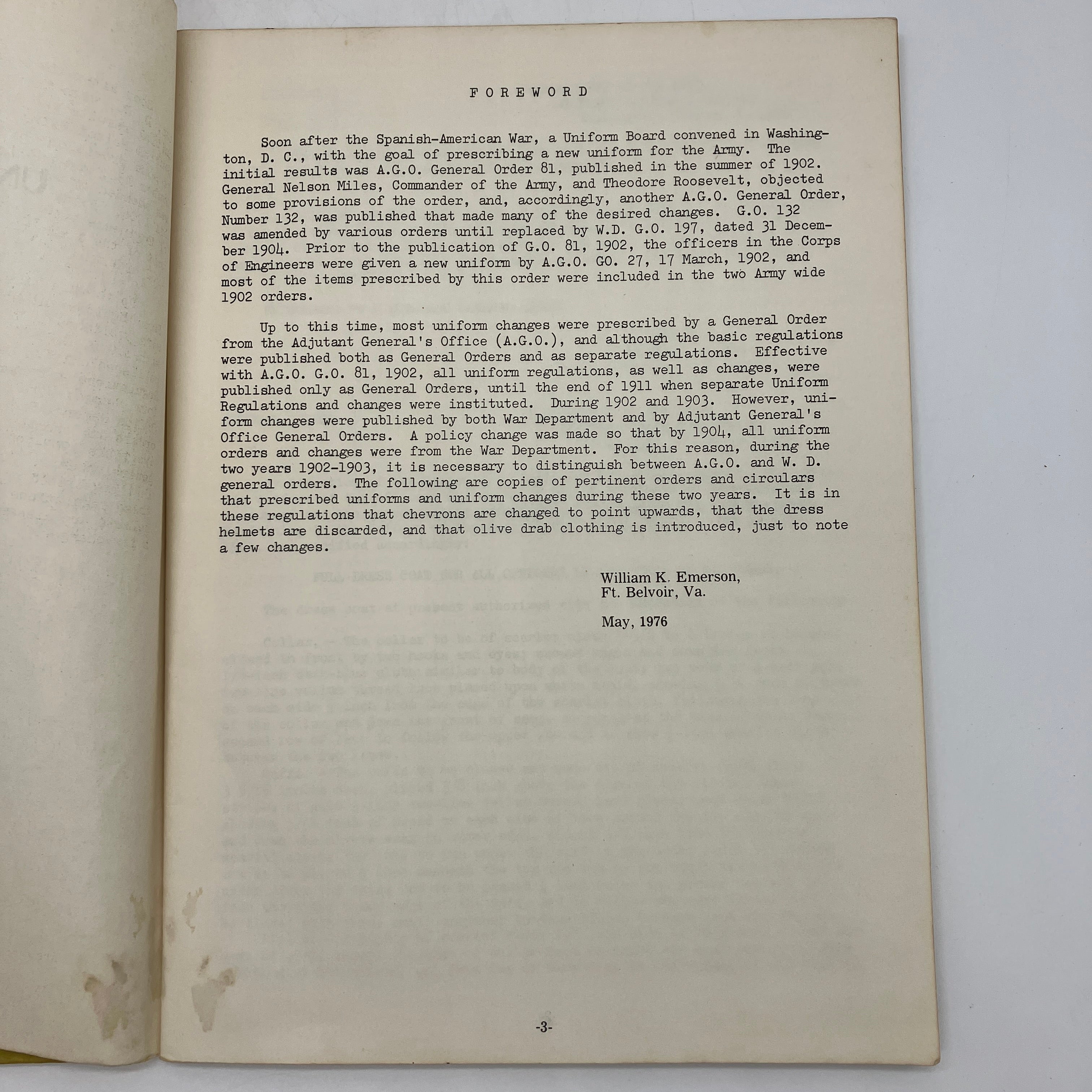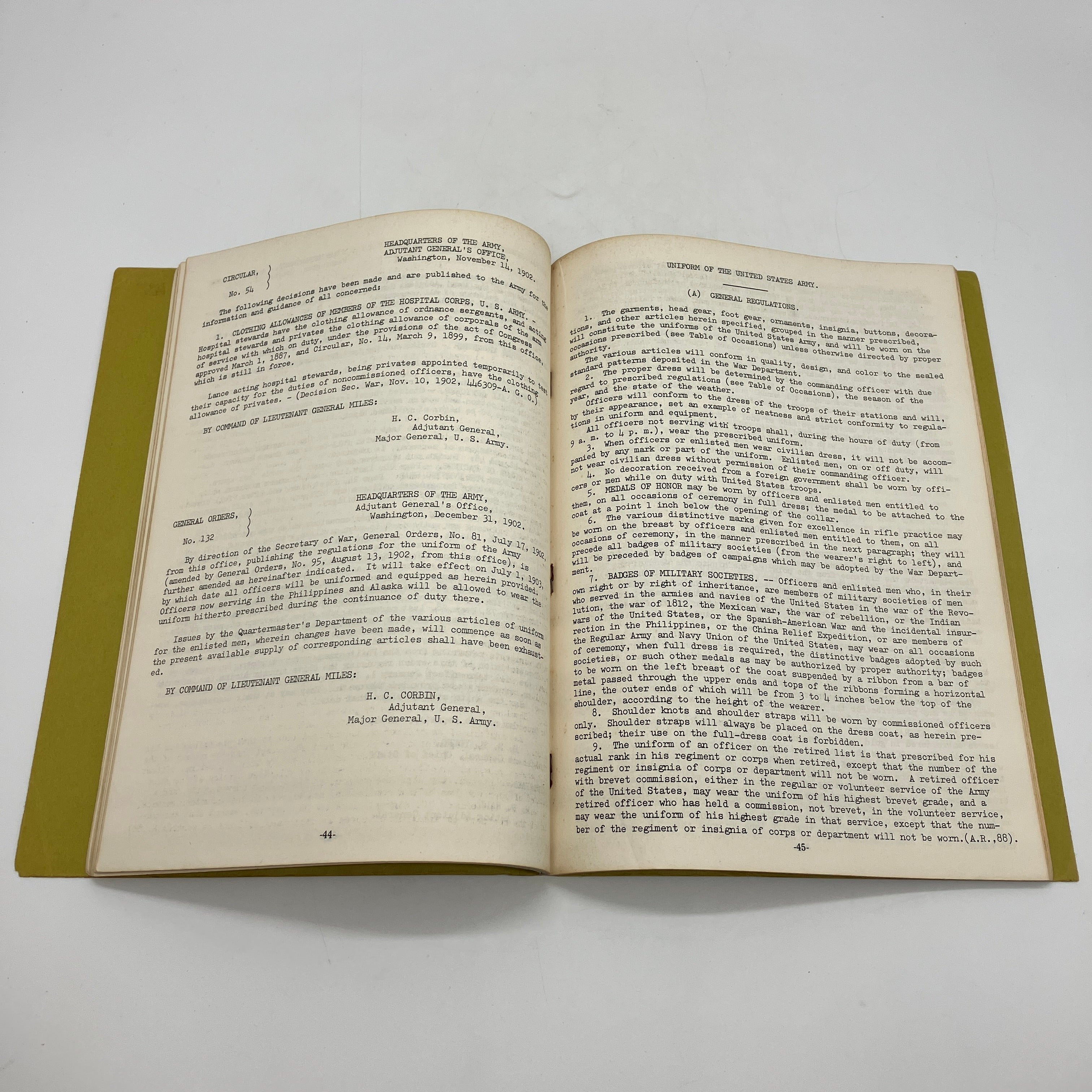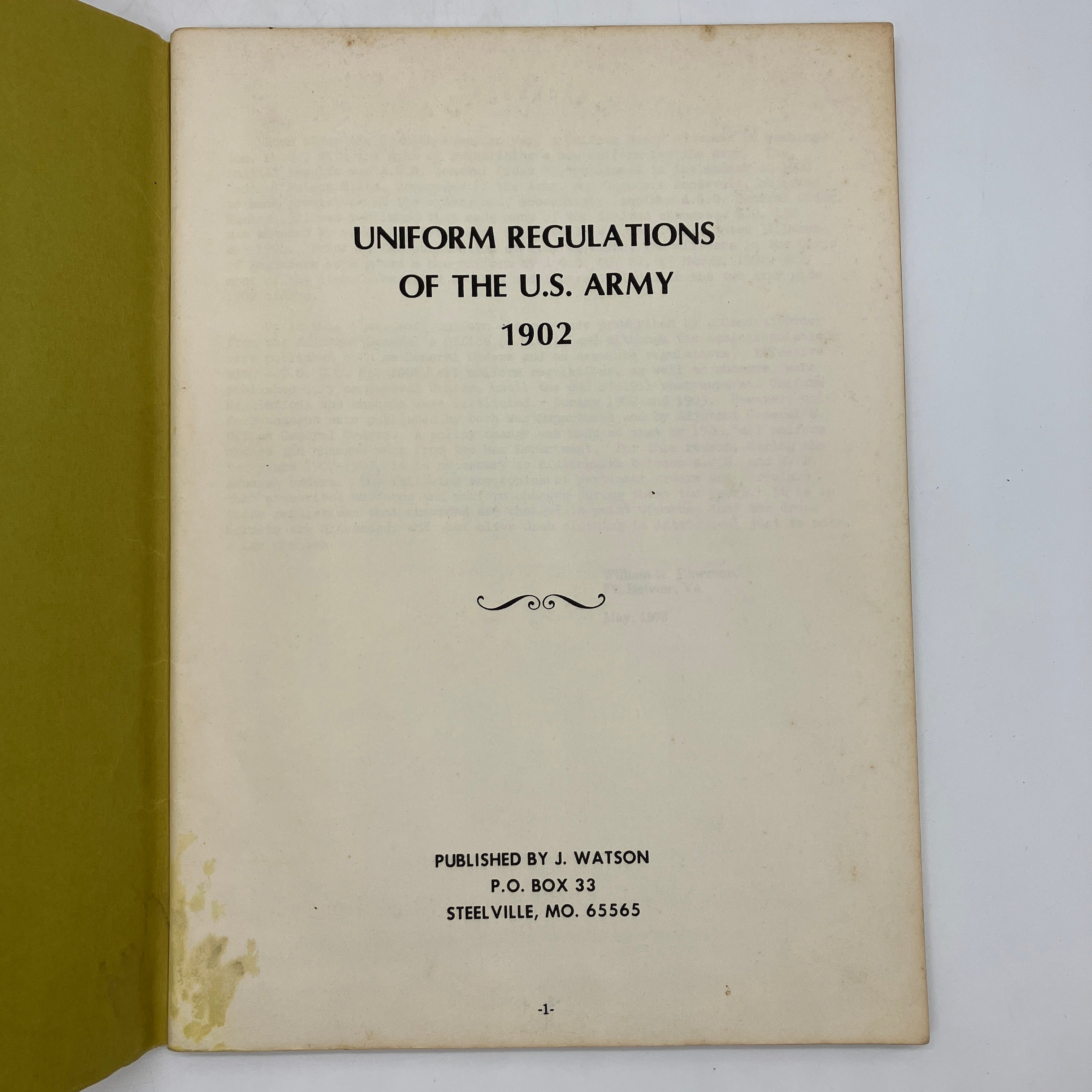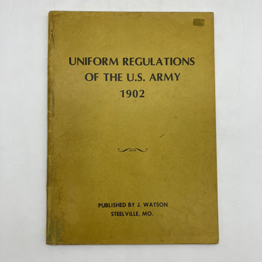 J. Watson, 1976. Facsimile edition large staple-bound booklet of Uniform Regulations of the U.S. Army 1902 by J. Watson.