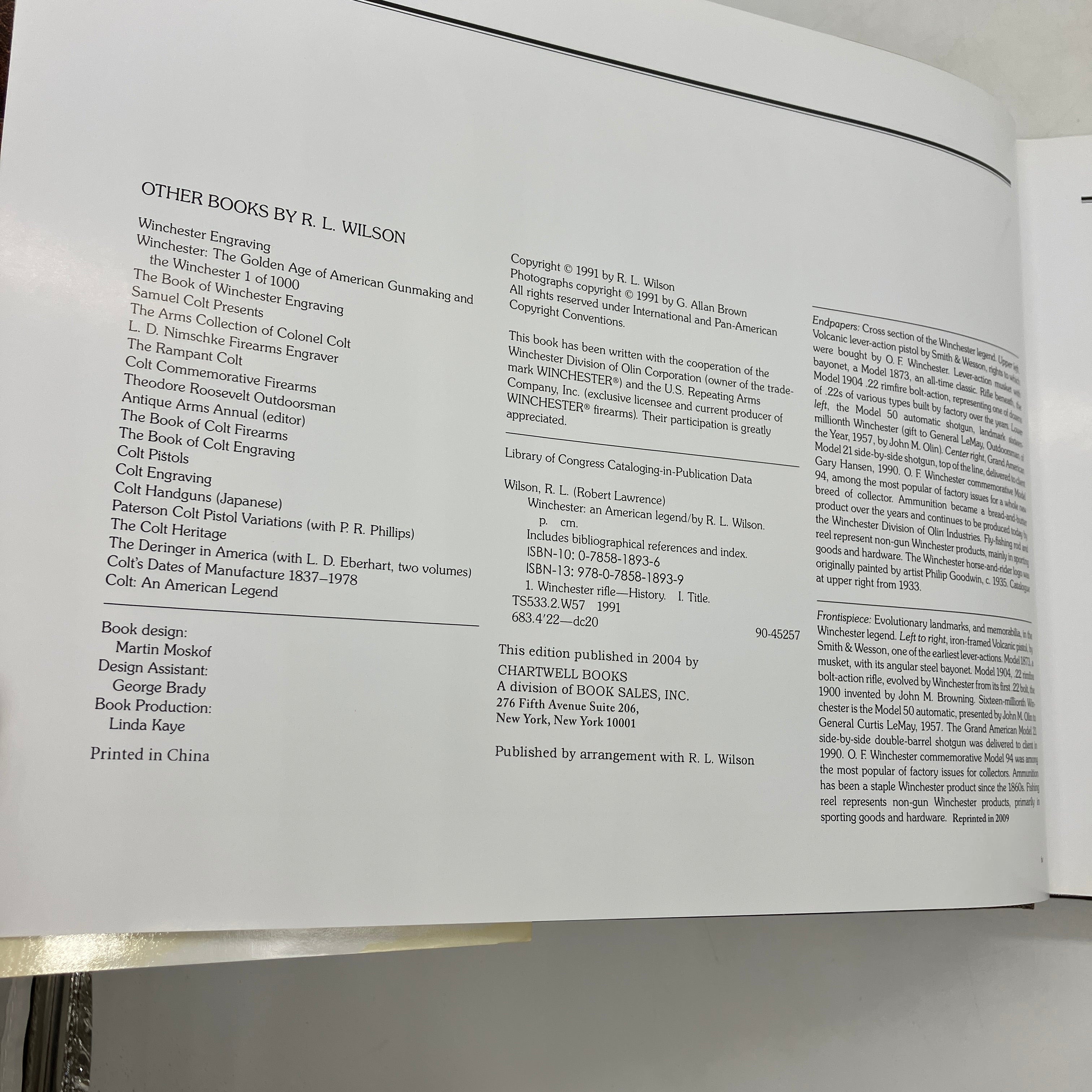 Chartwell Books, 2004. Hardcover with dust jacket of Winchester: An American Legend by R.L. Wilson.